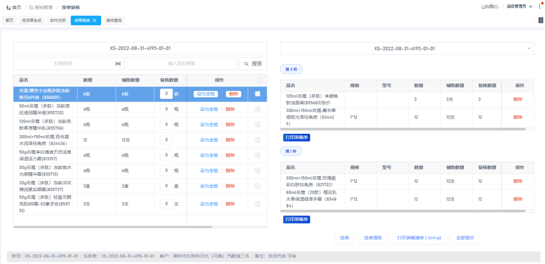 WMS系統提供了揀貨完成后再次復核的環節,通過單據與商品條碼比對可以快速得知該揀貨商品是否為客戶所下單商品,確保出庫商品無多發、漏發、錯發問題的產生,并可以在散件商品裝箱后打印裝箱標簽注明該項商品貨主。
