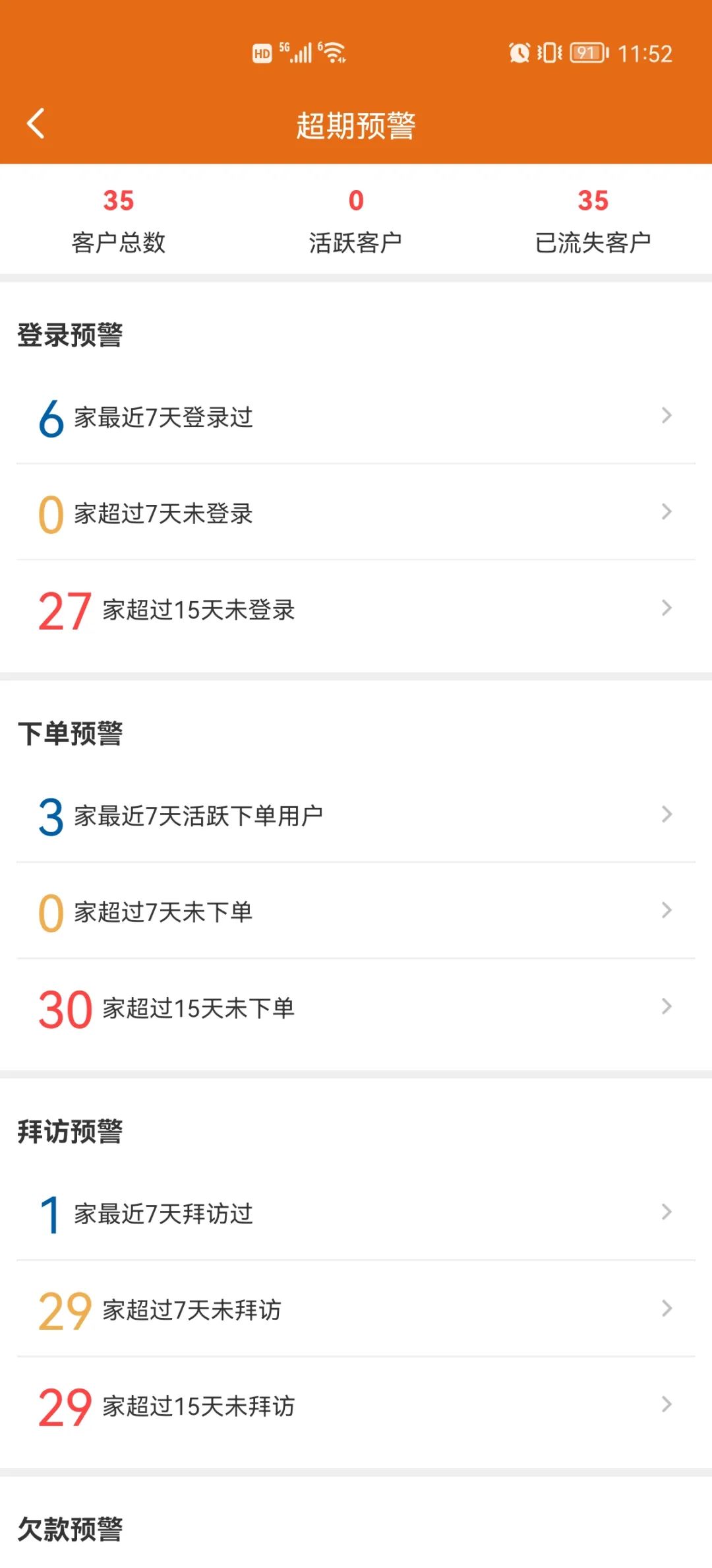 傳統(tǒng)老板,經(jīng)營多年,已經(jīng)積累了不少客戶,但要清楚掌握客戶情況,比如手上總共有多少客戶,有多少活躍客戶,客戶有多少天沒登錄, 多少天沒下單,有多少欠款,靠傳統(tǒng)的方式很難區(qū)分出來,但通過快馬超期預(yù)警能夠很清楚掌握客戶情況。