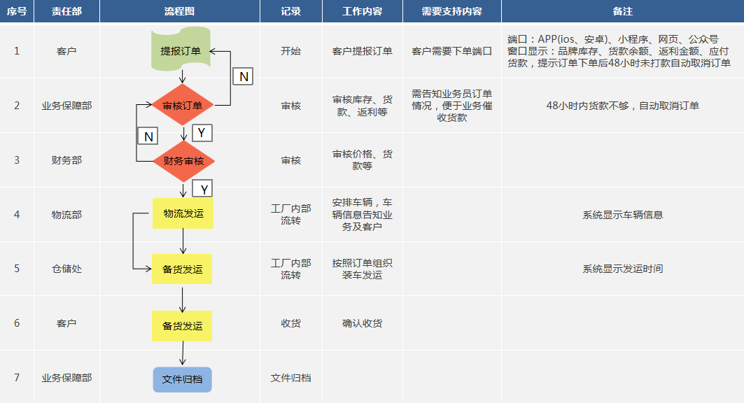 訂單接收、審核環節:告知業務訂單情況,并要求客戶補充貨款。