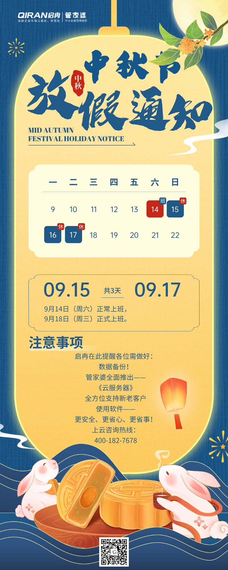 公告 | 啟冉軟件中秋節放假通知